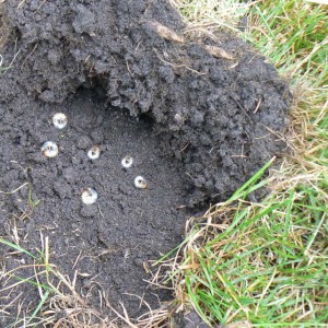 Grub damage is by far the most common type of damage observed on turfgrasses in North America.