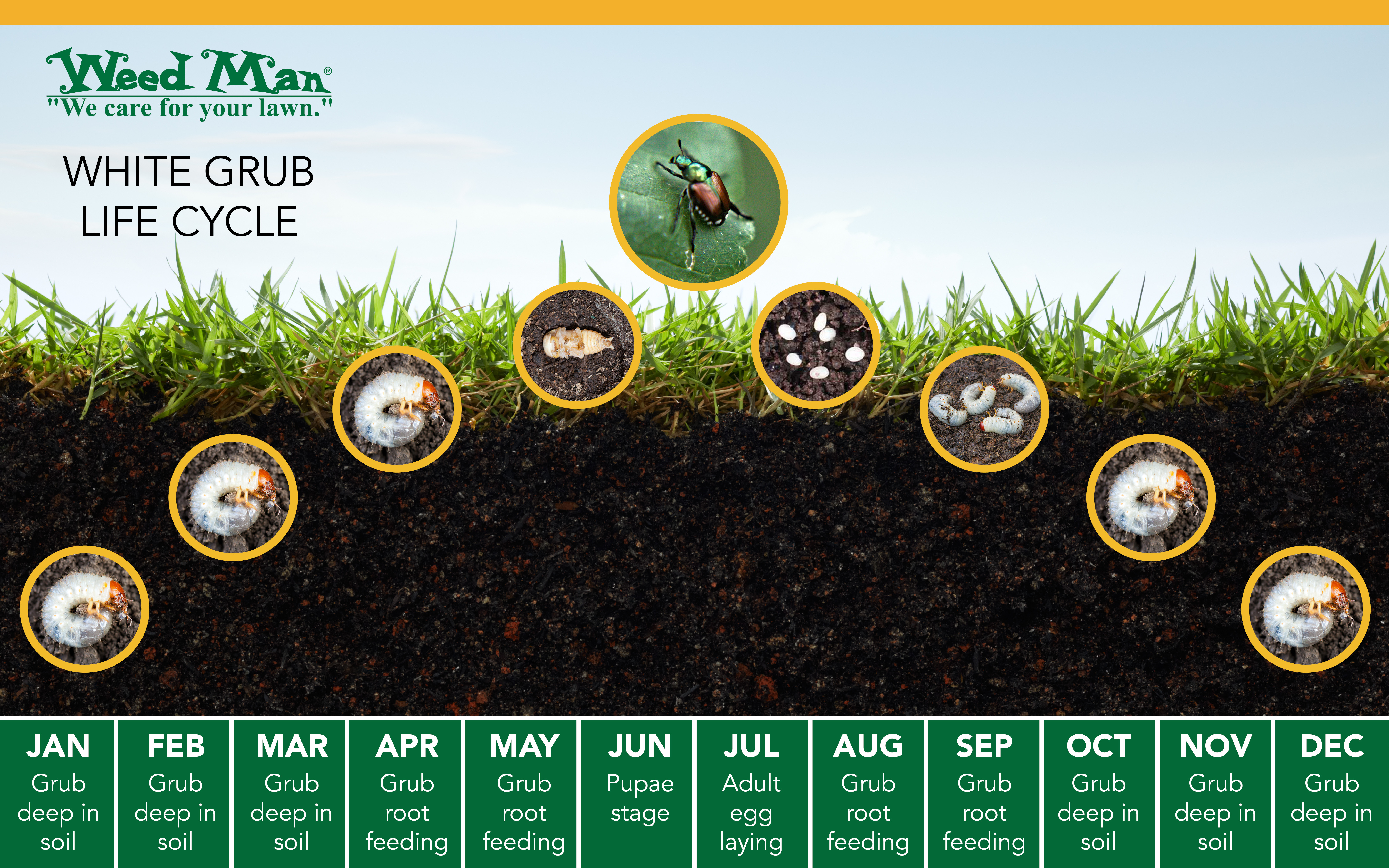 - Timely Application: Preventative treatments will be applied prior to egg-hatching season. Preventative grub control is usually applied in late summer or early fall to coincide with the grub life cycle. It is crucial for grub control to be applied at the correct time and under the right conditions for effective control.